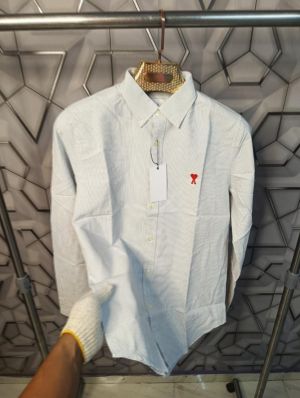 Ami Paris Grey Stripes Embroidery Logo Premium Shirt (1846)
