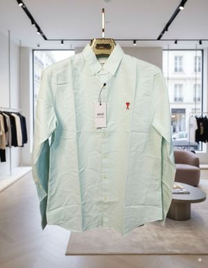 Ami Paris Acqua Green Stripes Embroidery Logo Premium Shirt (1847)