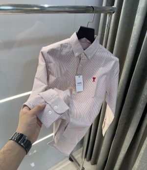 Ami Paris Pink Stripes Embroidery Logo Premium Shirt (1845)