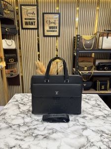 LOUIS_VUITTON BLACK EMBOSSED PREMIUM QUALITY LAPTOP BAG WITH STRAP