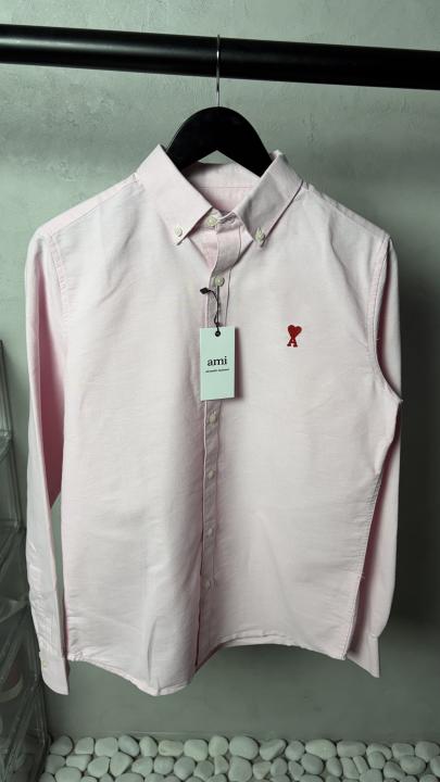 Ami Heart Logo Premium Pink OxFord Shirt 1214