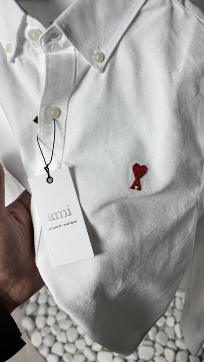 Ami Heart Logo Premium White Oxford Shirts 1213