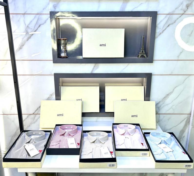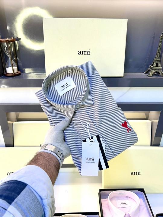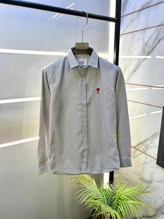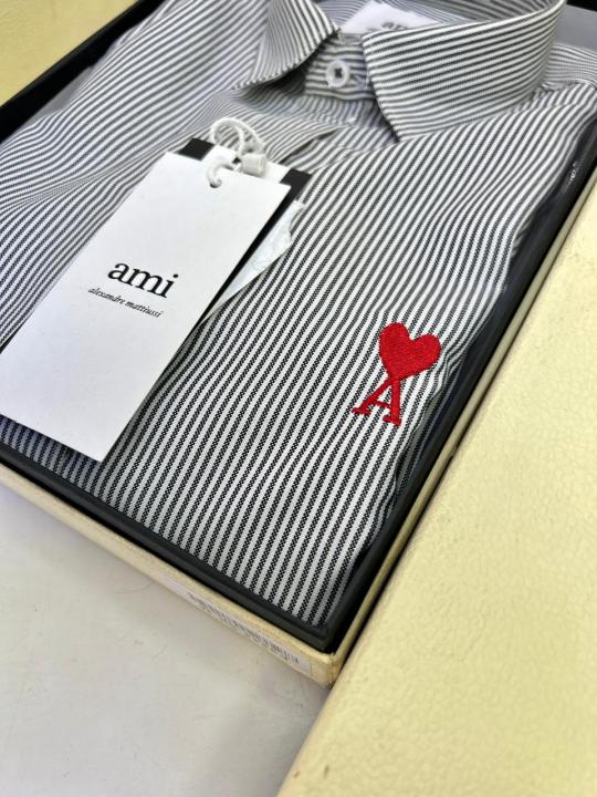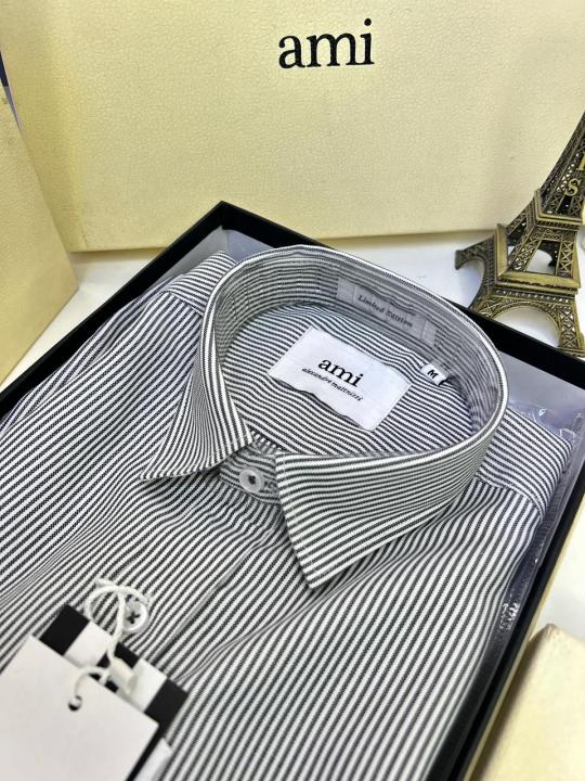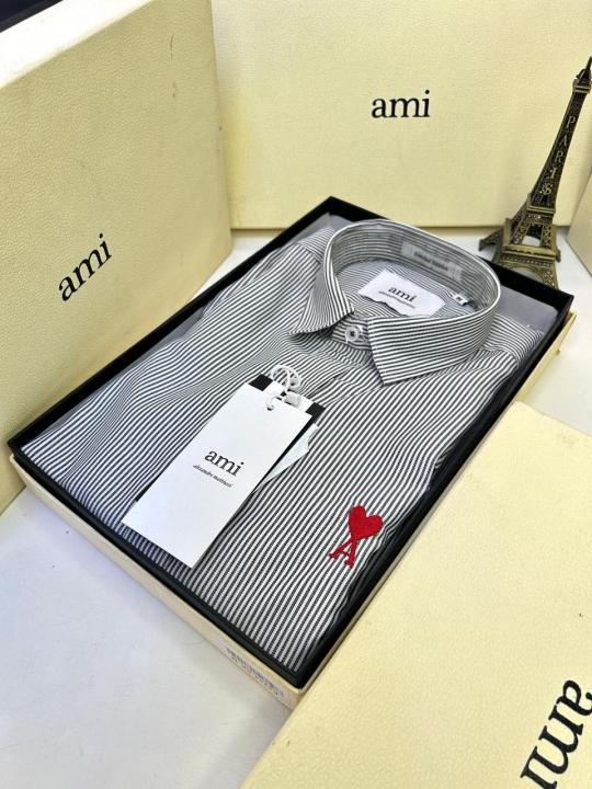 Home Shirts Ami Logo White Premium Lining Shirt With Brand Box Packing F3244-WH