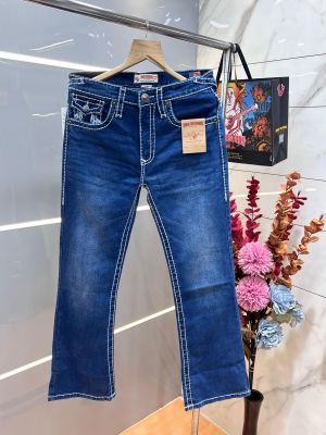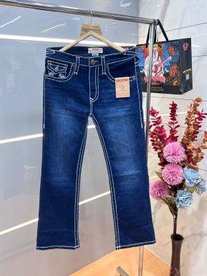 True Religio n Dark Shade Premium Imported Stretchable Lycra Fabric Boot Cut Back Flap pocket Design Denim with Brand Box and Carry Bag 3550