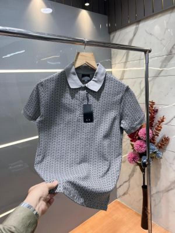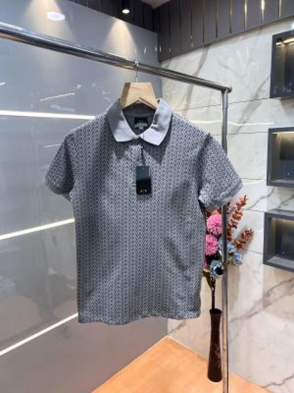 Arman i Exchange Grey Premium Cotton Lycra Pique fabric Polo Tshirt with Allover Monogram Printed 3161