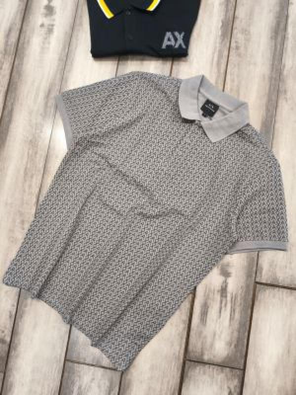 Home T-Shirts Arman i Exchange Grey Premium Cotton Lycra Pique fabric Polo Tshirt with Allover Monogram Printed 3161
