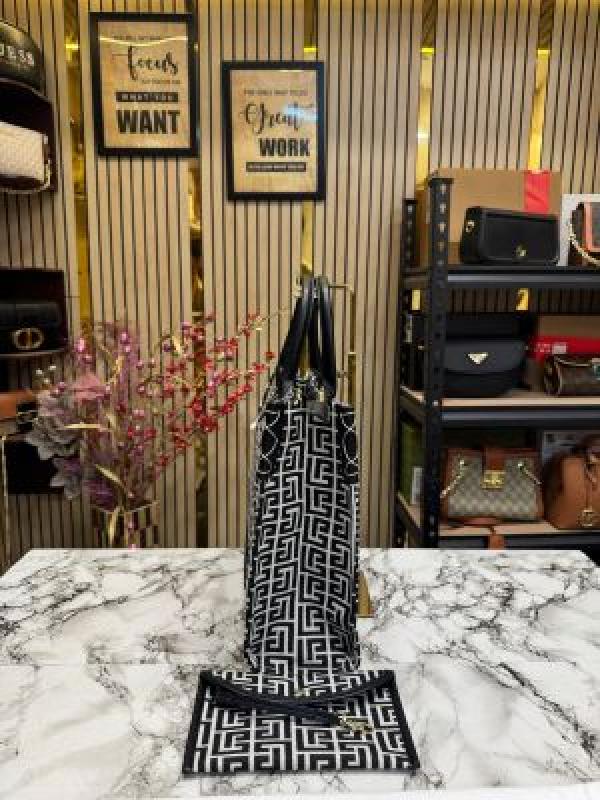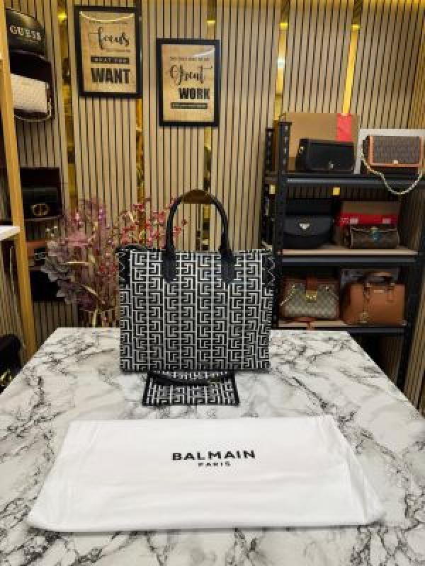 Balmai_n Paris Monogram Premium Quality Tote Bag With Dust Bag (Black)