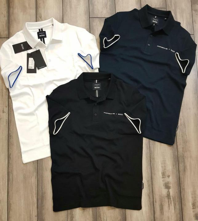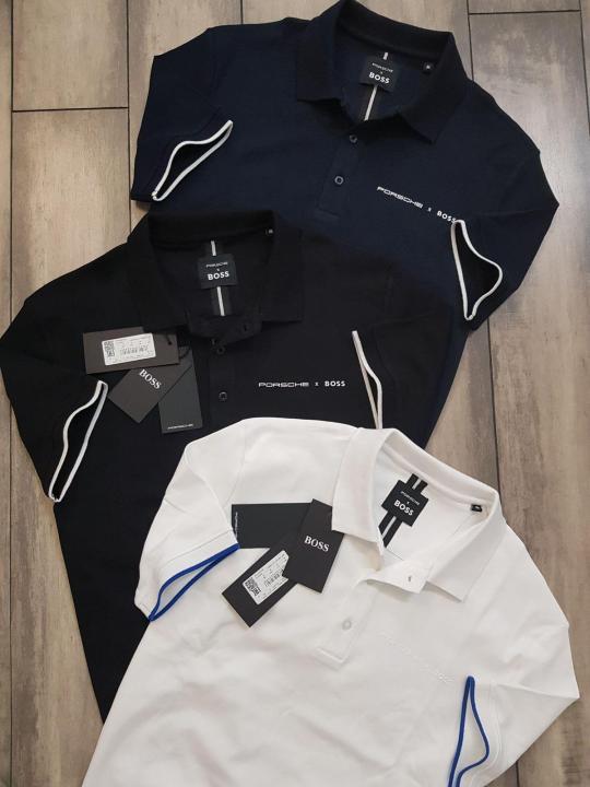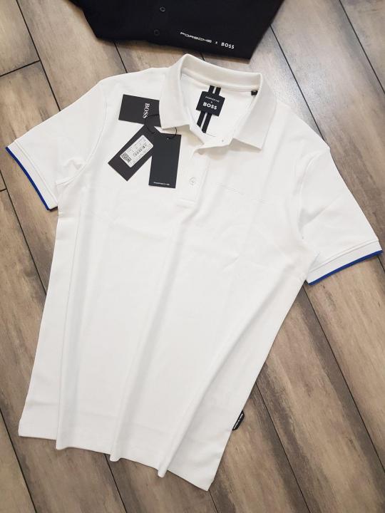 Home T-Shirts Boss x Porsche Edition White Collar Neck Premium Polo T-shirt F1829-WH