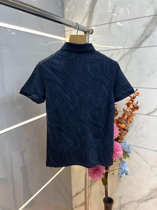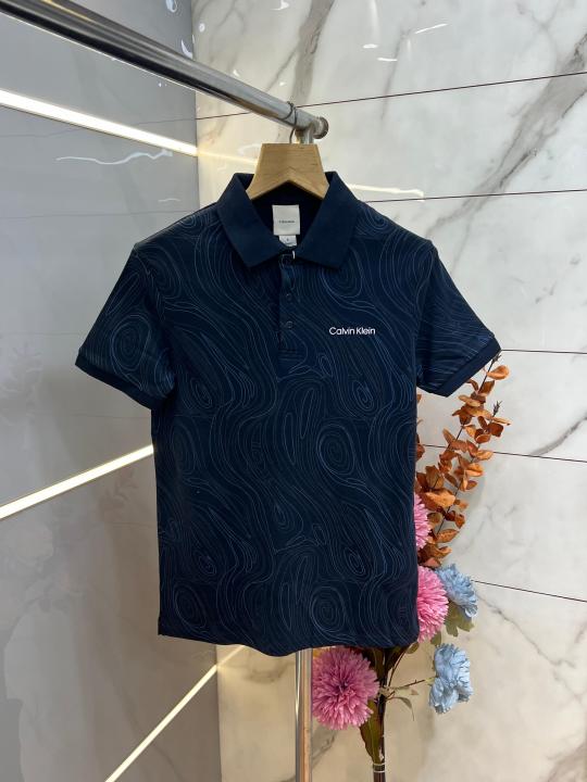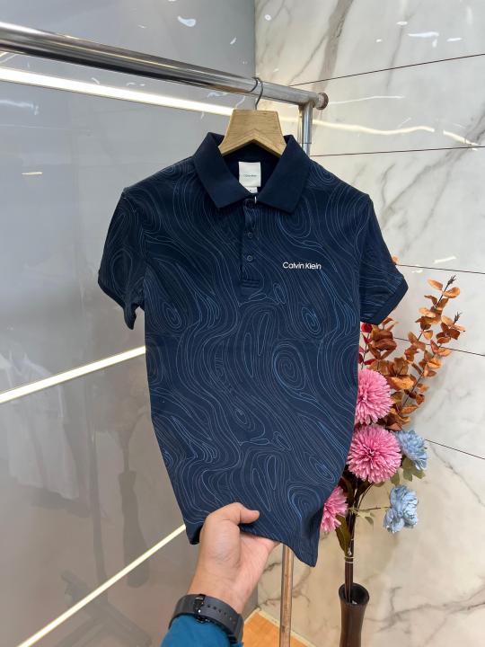 Home T-Shirts Calvin Klei n Navy Premium Imported Compact Yarn 240 GSM Interlock Fabric Polo Tshirt with All over Design and Emboss Logo 3926