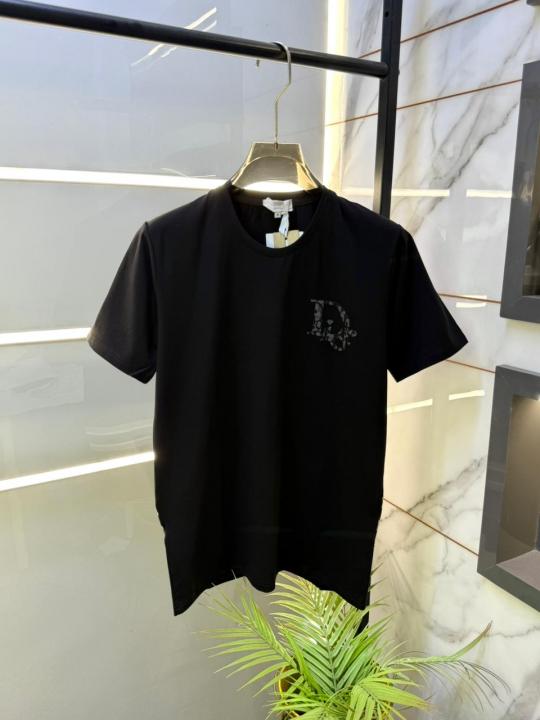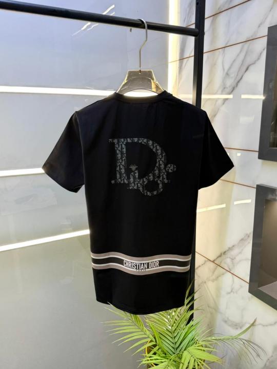 Home T-Shirts Christian Dio r Back Print Premium Round Neck Black T-shirt With Brand Carry Bag F2337-BL