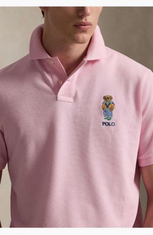 Ralp h Lauren Pink Premium Cotton Pique fabric Polo Tshirt with Front Design and Embroidered Logo 4090