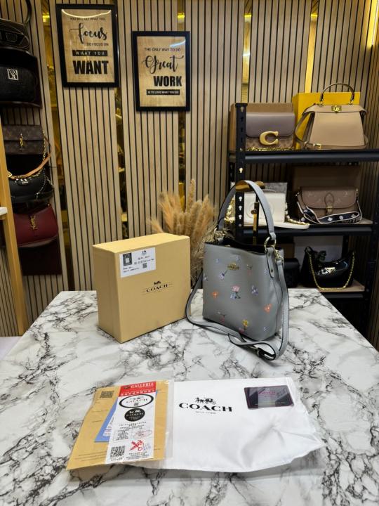 Coac_h Bucket Crossbody Bag With Signature Floral Print (White Flower)