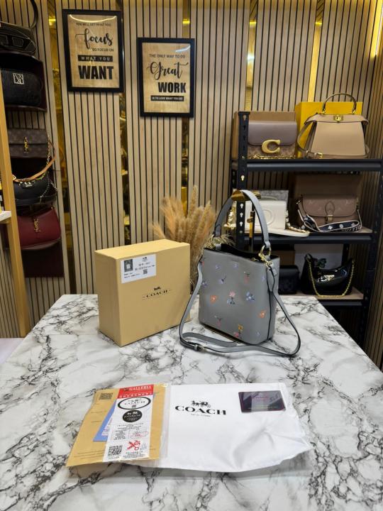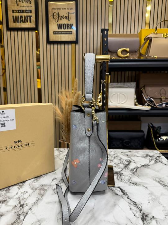 Coac_h Bucket Crossbody Bag With Signature Floral Print (Grey Flower)
