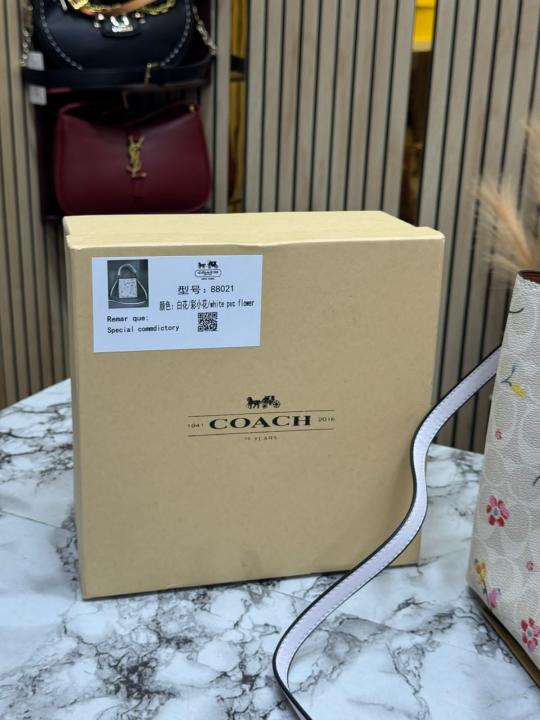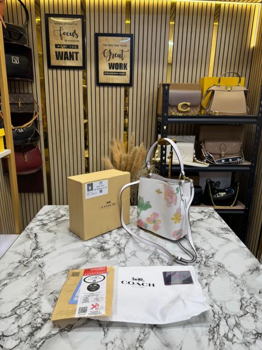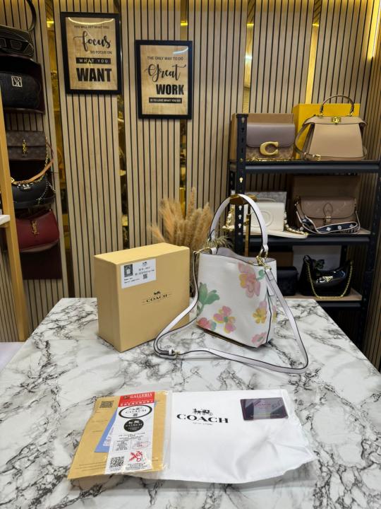Coac_h Bucket Crossbody Bag With Signature Floral Print (White Flower)