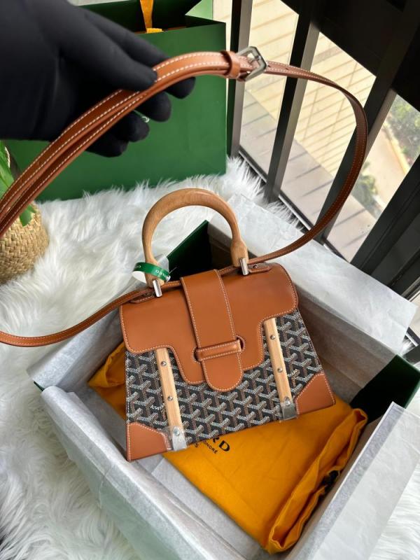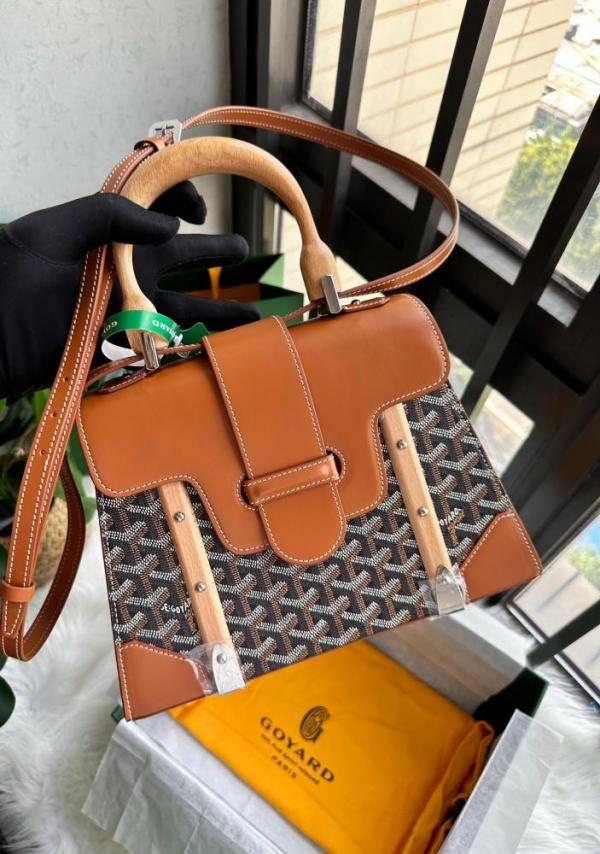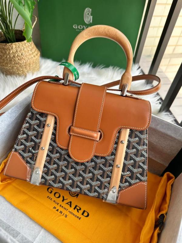 Goyard Goyardine Saigon Brown Big PM Top Wodden Handle Bag in Brown With OG Box & Dust Cover 23081 Brown