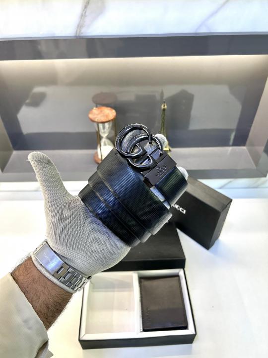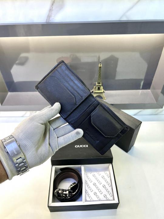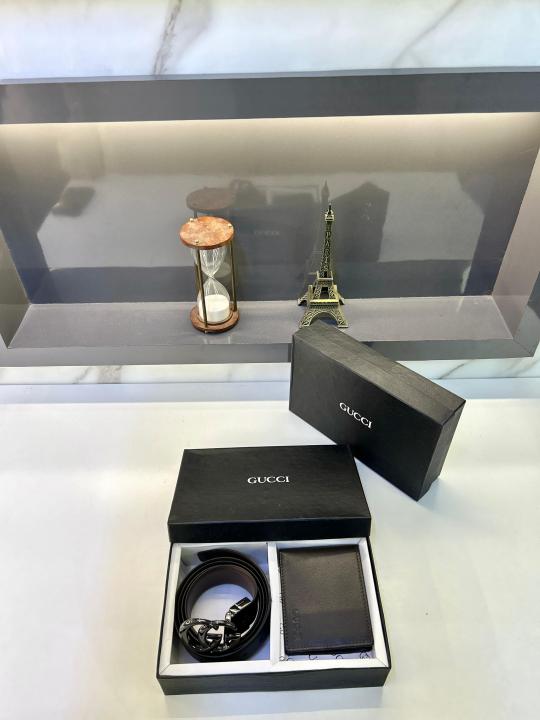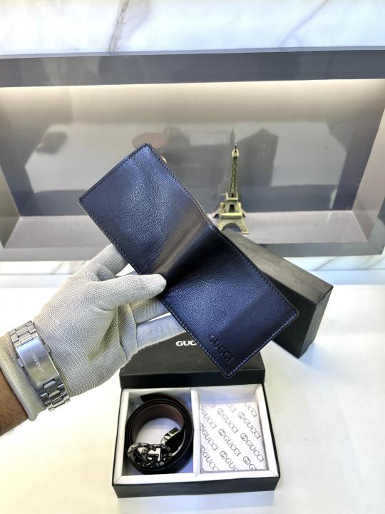 Gucc_i Black Wallet & Belt Combo Fa 398