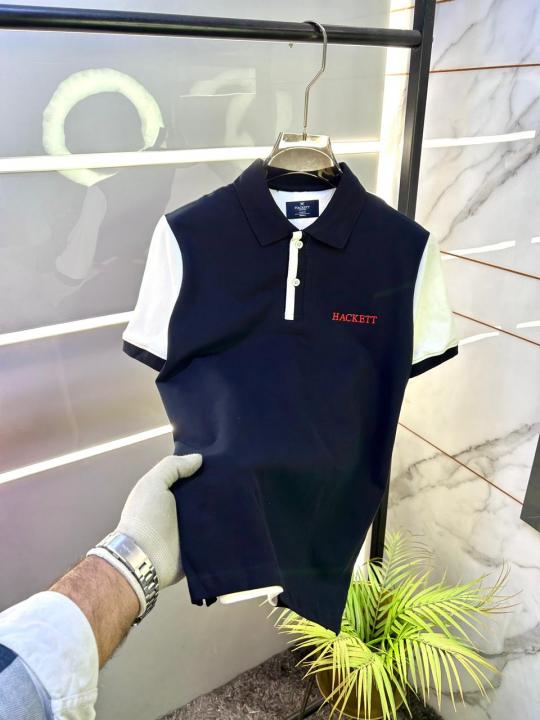 Home T-Shirts Hacket t London Navy Back Print Collar Neck Premium Polo T-shirt F3505-NY