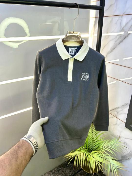 Loewe Grey Knitted Imported Premium Collar Sweatshirts F3359-GY