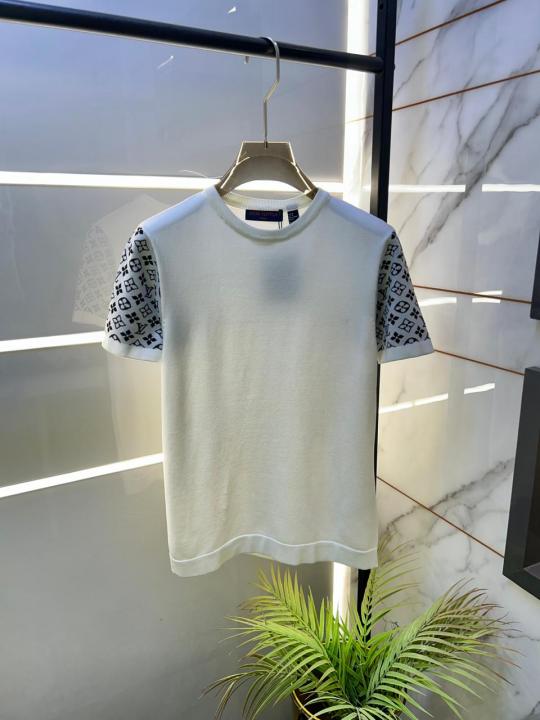 Home T-Shirts Loui s Vuitton Imported White knitted Super Premium Round Neck T-shirt F3516-WH