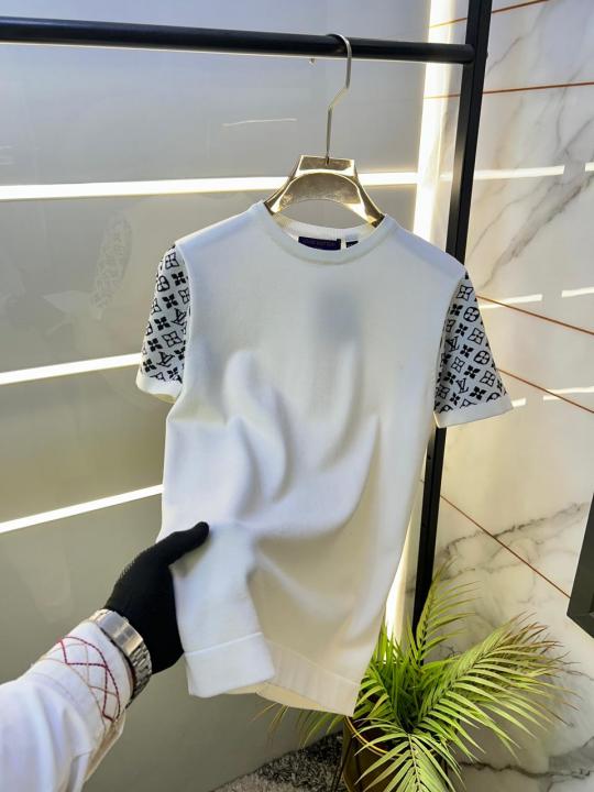 Loui s Vuitton Imported White knitted Super Premium Round Neck T-shirt F3516-WH