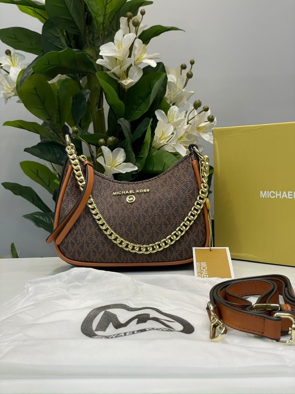 Michalekorsmk jet set charm small logo pochette with og box(22083-brown-brown)