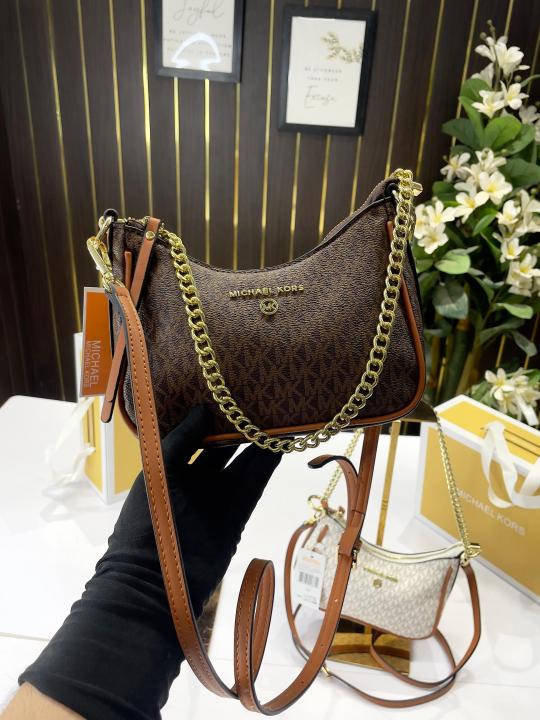 Michalekorsmk jet set charm small logo pochette with og box(22083-white-brown)