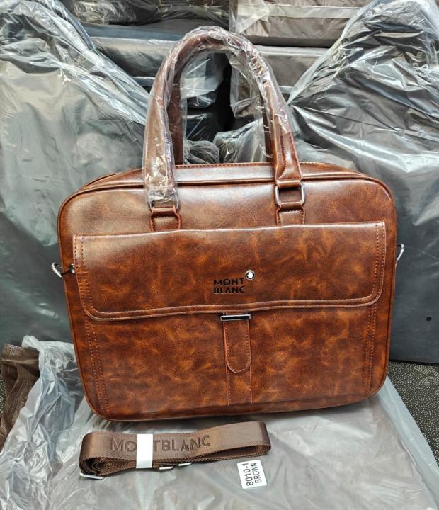 Mont Blanc Modern Front Panel Leather Laptop Bag With Strap Brown (8097-1)
