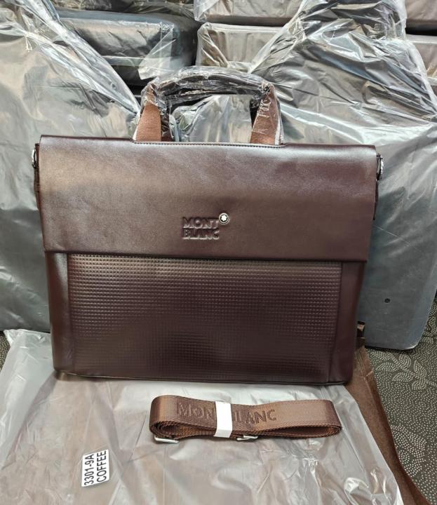 Mont Blanc Executive Textured Panel Flap Leather Laptop Bag With Strap (3301-9A) (Coffee)