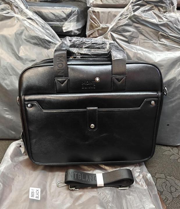 Mont Blanc Structured Leather Laptop Bag With Pocket Strap Closer (V-8059-1)