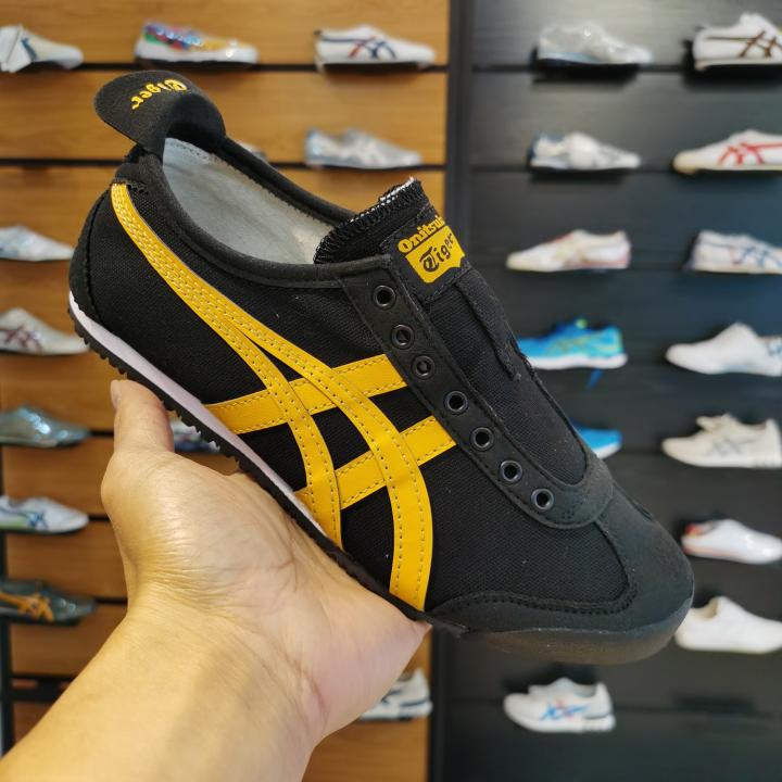 The Onitsuka Tiger Mexico 66 Slip-On in "Black/Tiger Yellow" is a bold, high-contrast tribute to the brand's classic 1960s track aesthetic. Often sought out for its "Tai-Chi" energy, this model removes the laces entirely in favor of an internal elastic band, creating a sleek, minimalist profile. This 7A Premium Quality edition is designed for men who want the legendary "Bruce Lee" color palette with the convenience of a modern slip-on.