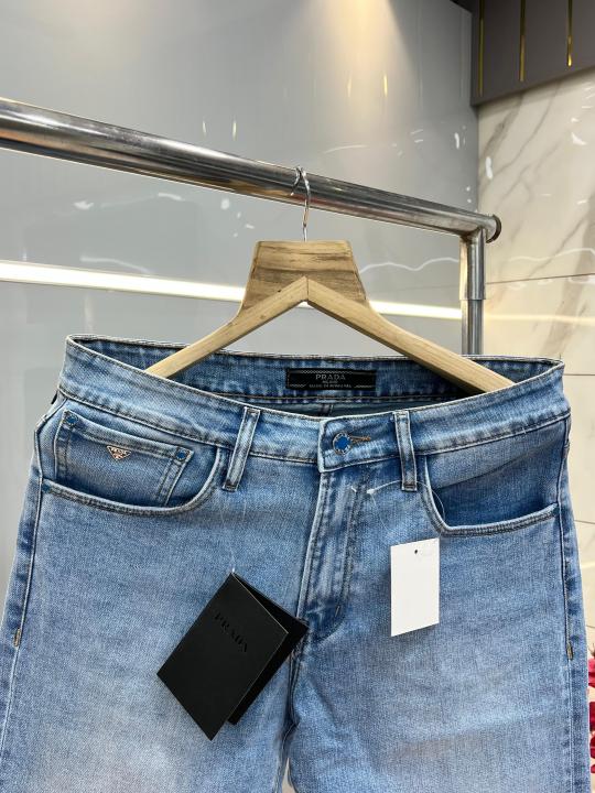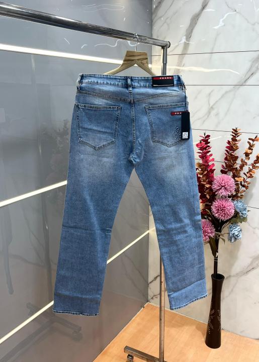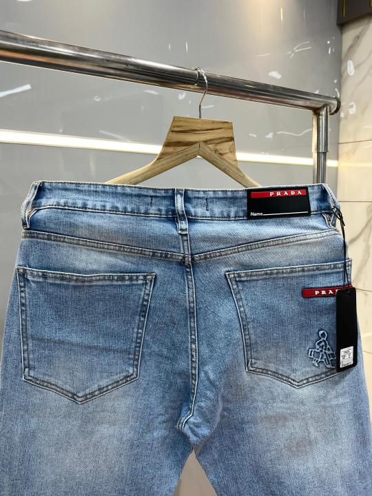 Home Jeans Prad a Blue Shade Straight Fit Premium Imported Stretchable Lycra Fabric Denim with Emboss Logo 3763