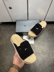 Loro Pian.a Suede Black Slides Premium