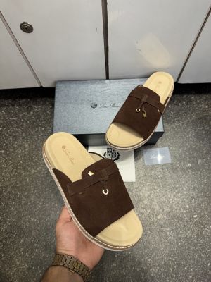 Loro Pian.a Suede Brown Slides Premium