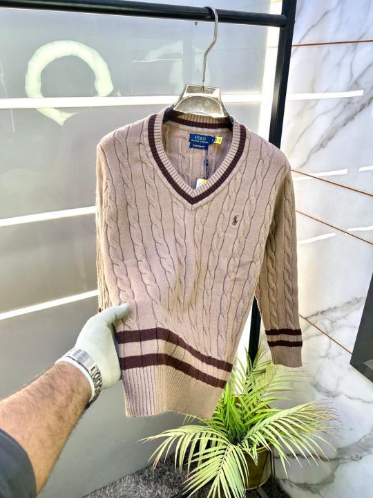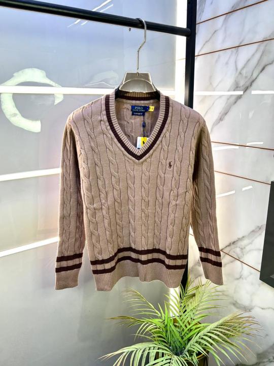 Home Premium sweatshirts Ralph_Lauren Camel Imported knitted V Neck Super Premium Pullovers F3246-CA