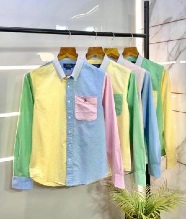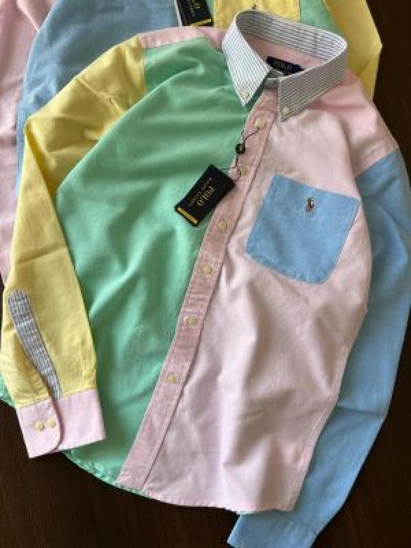 Home Shirts sale_Polo_Ralph_Lauren_Pink_Green_Embroidery_Logo_Oxford_Fun_Shirt_With_Brand_Polly_Bag_(1612)