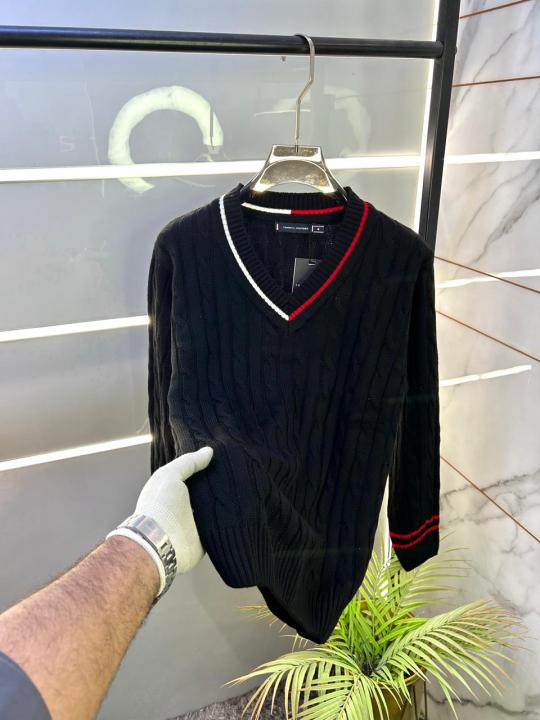 Home Premium sweatshirts Tommy_Hilfiger Imported Black knitted V Neck Super Premium Pullovers F3238-BL