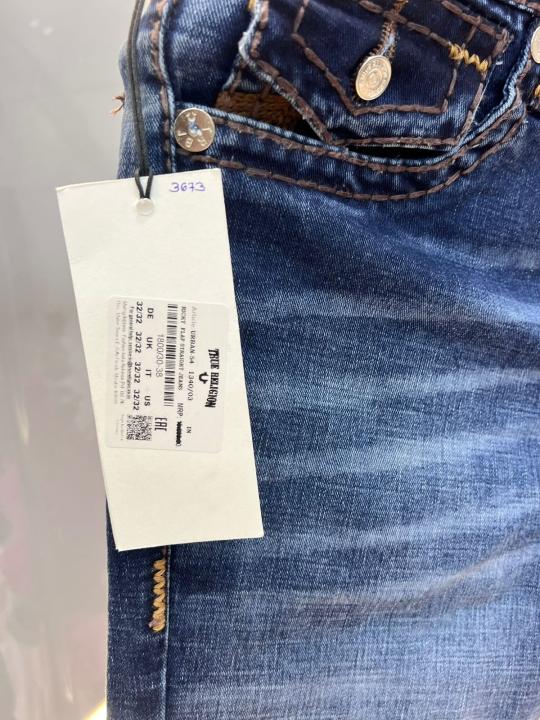 Home Jeans True Religio n Dark Shade Premium Imported Stretchable Lycra Fabric Straight fit Denim with Back Flap pocket Design 3673