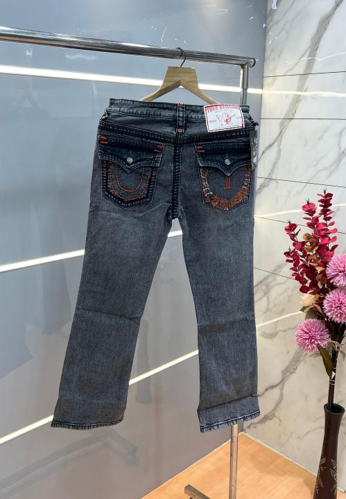 True Religio n Light Grey Shade Boot cut Premium Imported Stretchable lycra fabric Denim with back flap pocket Design 3767
