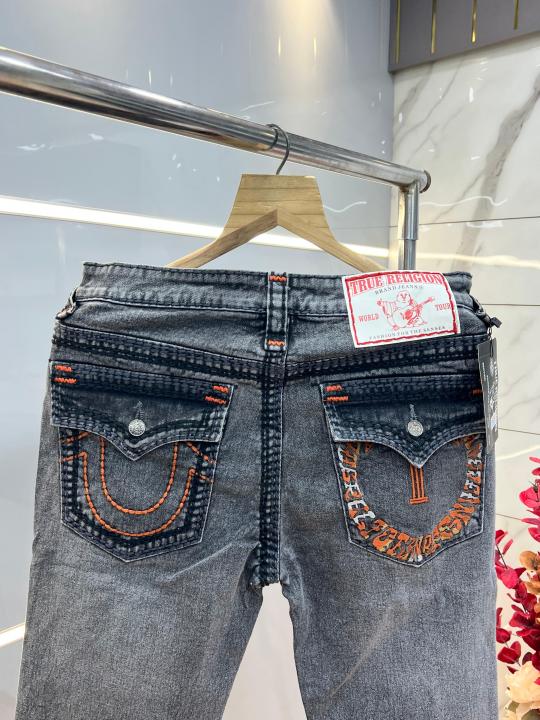 Home Jeans True Religio n Light Grey Shade Boot cut Premium Imported Stretchable lycra fabric Denim with back flap pocket Design 3767