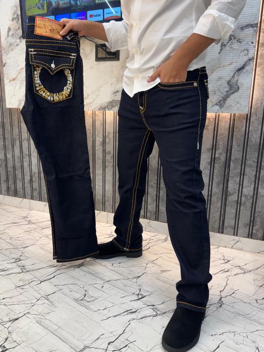 True Religio n Black Shade Premium Imported Stretchable Lycra Fabric Straight fit Denim with Back Flap pocket Design 3394